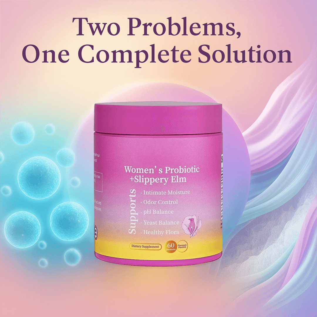 After 40, you need gut support AND tissue healing. Probiotics fix your microbiome. Slippery Elm soothes dry, irritated tissues. Together, they address what's actually happening in your body.