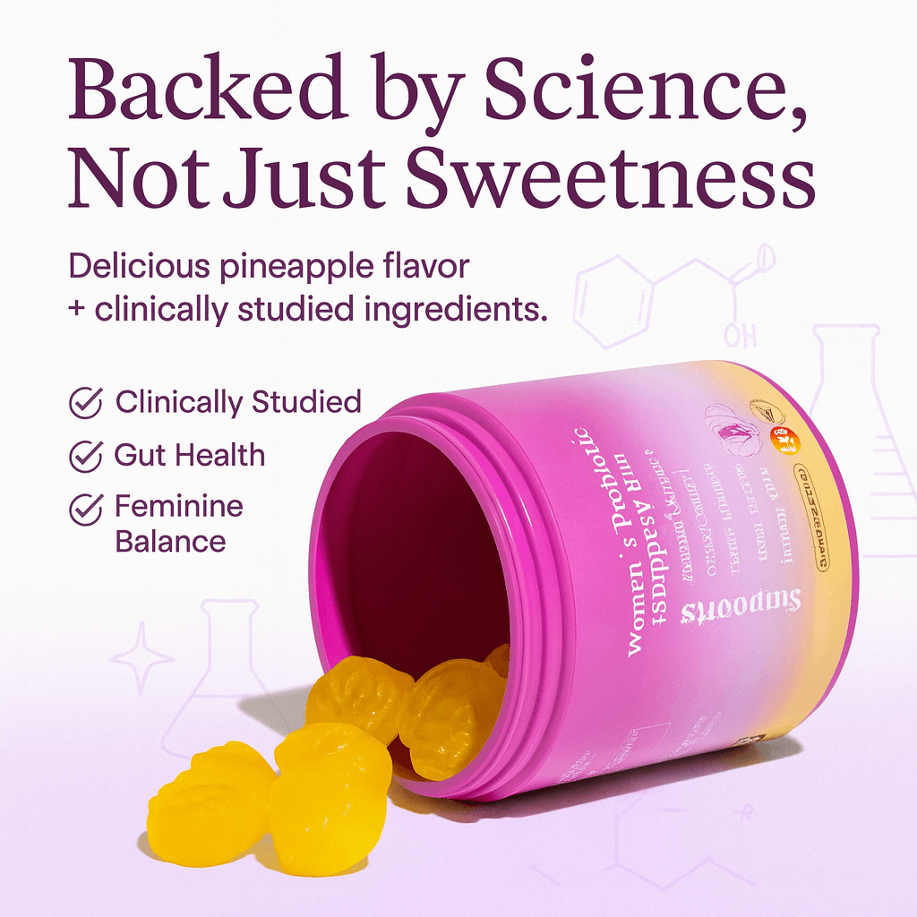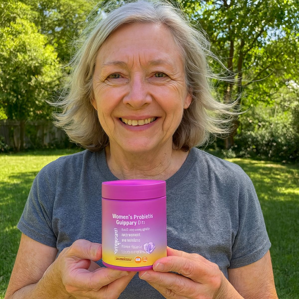 "I was skeptical about gummies, but after 2 weeks the afternoon bloat is GONE and the dryness is improving! Tried 6 different probiotics since turning 45 - this is the first that actually works. The Slippery Elm makes all the difference."